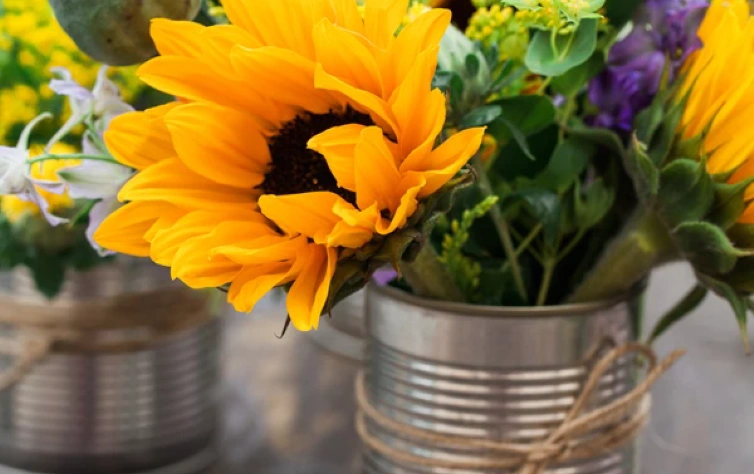 Aqui vai uma forma bem criativa de reaproveitamento: aquelas latas de achocolatado ou leite em pó podem virar um vaso lindo de flores! É só você tirar o rótulo e decorar com fitas ou papel adesivo.