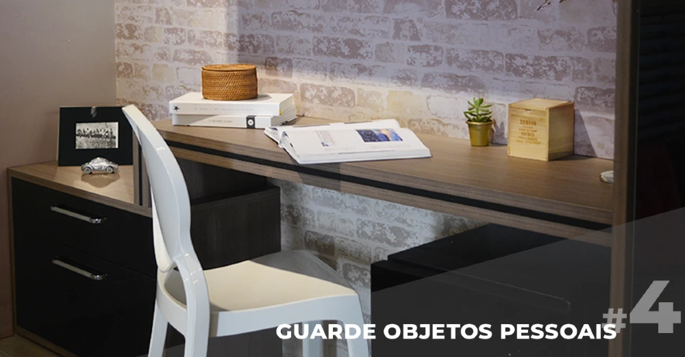 Se você não possui um lugar para guardar objetos pessoais, como bolsa, casaco e nécessaire, é provável que eles acabem ficando em cima da sua mesa de trabalho. O ideal é ter um armário especial para guardar esses objetos assim que chegar no escritório.