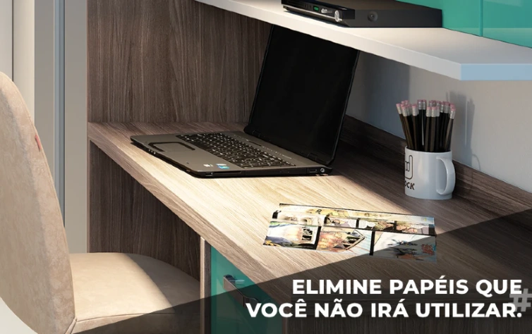 Papéis soltos espalhados pela mesa são os piores inimigos do foco. Temos a mania de achar que eles serão importantes em algum momento, mas a verdade é que se você não precisou deles em duas semanas, é provável que não precisará deles nunca. Jogue no lixo. Se você não desapega dos seus papéis tão fácil assim, pelo menos encontre um lugar fixo para eles, como uma gaveta, uma caixa ou uma pasta.