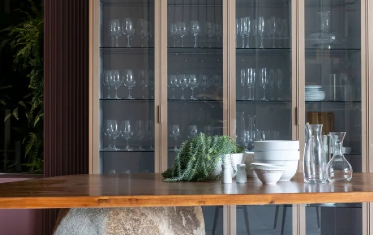 Para taças, copos e louças, por exemplo, você pode optar por uma cristaleira ao invés de um armário fechado.